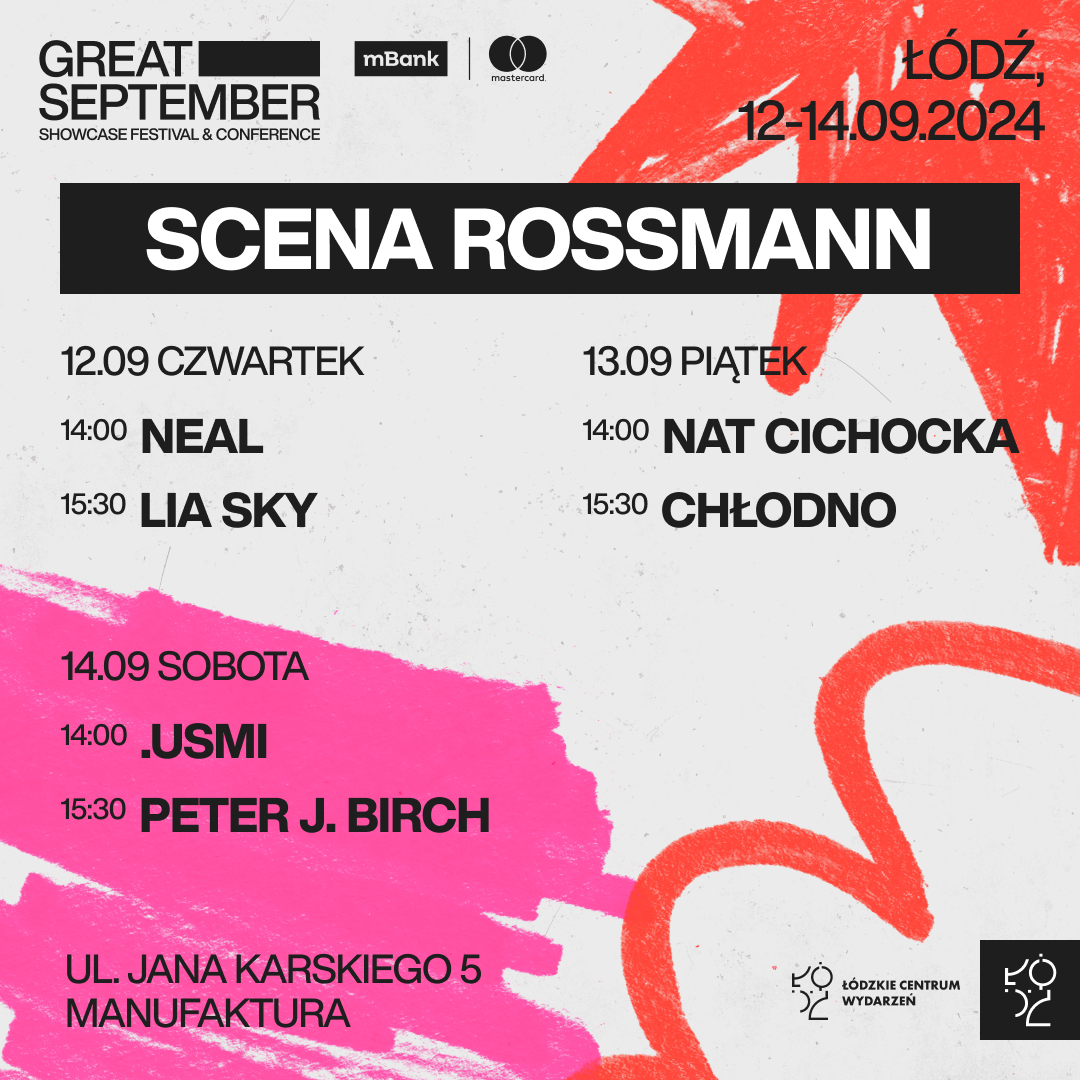 W dniach 12-14 września odbędzie się 3 odsłona festiwalu Great September Showcase Festival & Conference w Łodzi. Rossmann, oprócz sponsorowania wydarzenia, zaprasza również na swoją scenę w drogerii w Manufakturze.