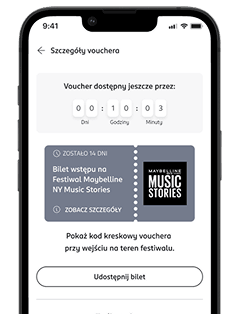 Kup produkty Maybelline w drogerii i zeskanuj aplikację przy kasie. Bilet na festiwal trafi do Twojego profilu w aplikacji.